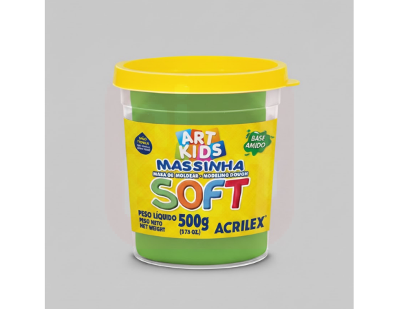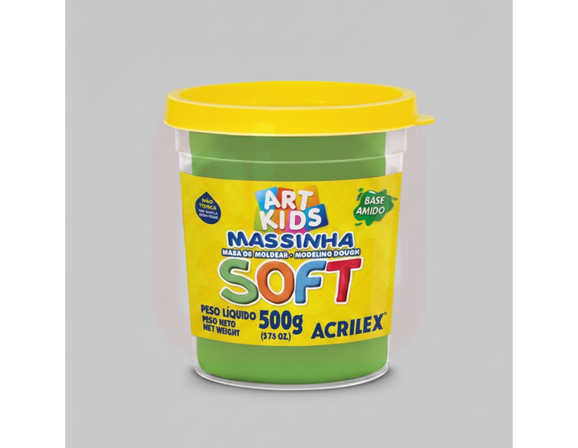 A Massa de Modelar Soft 150g Verde - Acrilex é perfeita para soltar a criatividade de crianças e adultos! Sua textura macia e fácil de moldar proporciona uma experiência sensorial agradável e divertida. Desenvolvida com alta qualidade Acrilex, não gruda nas mãos, não resseca facilmente e oferece cores vivas e intensas, ideais para atividades escolares, artesanais e recreativas. Estimula a coordenação motora, a criatividade e o desenvolvimento cognitivo, tornando o aprendizado ainda mais lúdico.