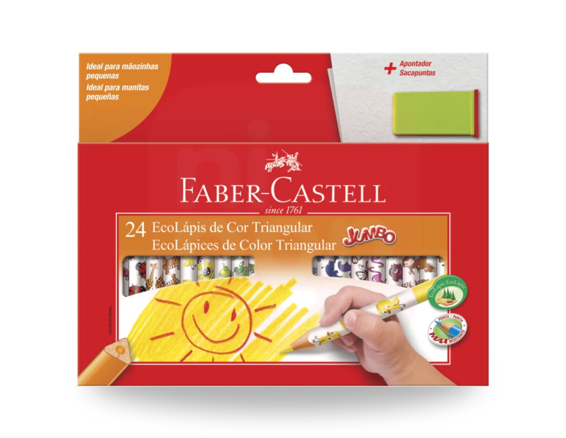 Lápis de Cor 24 Cores Jumbo Triangular + Apontador Faber-Castell