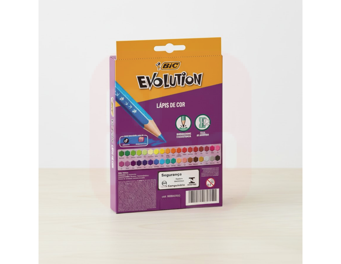 O Lápis de Cor Sextavado Evolution 36 Cores da BIC é a escolha perfeita para quem busca qualidade, resistência e uma explosão de criatividade! Fabricado com resina plástica, ele é mais resistente à quebra, não lasca ao apontar e garante segurança para crianças. Seu formato sextavado proporciona melhor pegada e controle, enquanto as 36 cores vivas e intensas permitem criações incríveis em desenhos, trabalhos escolares ou projetos artísticos. Um produto durável, seguro e com a excelência da BIC.