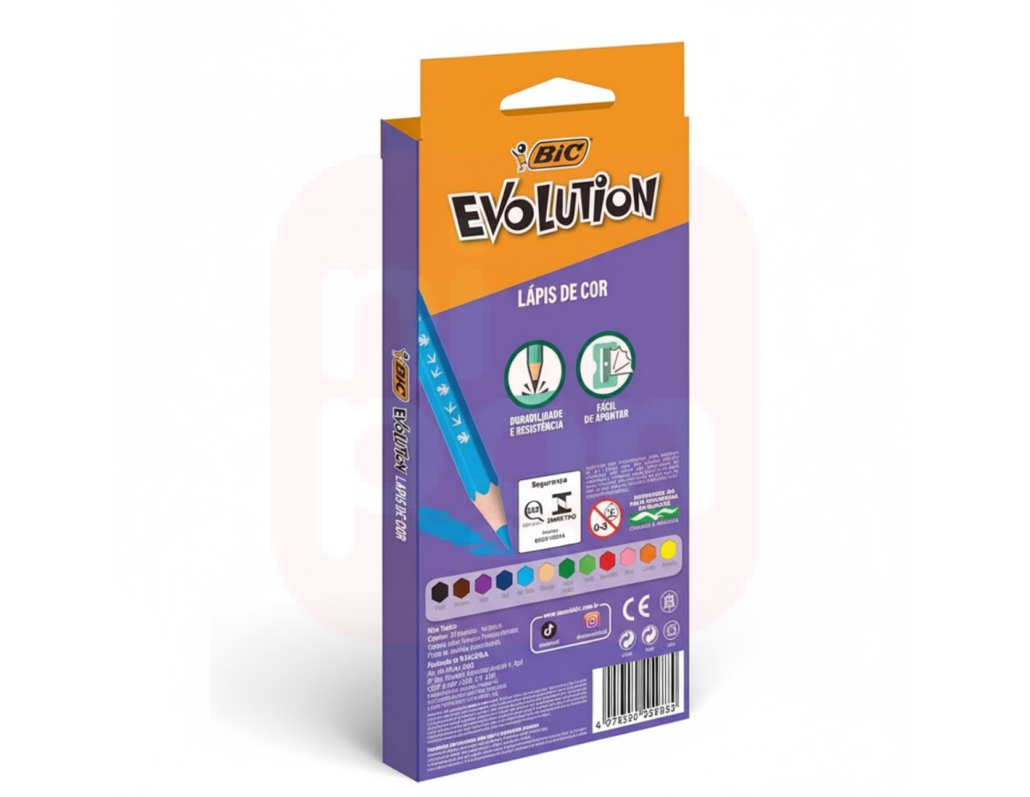 Graças ao exclusivo processo de quadri-extrusão da BIC, os lápis Evolution são resistentes, possuem ponta firme e fácil de apontar, além de minas macias que proporcionam um traço suave e cobertura excelente. As 12 cores vibrantes e intensas tornam o desenho mais colorido e divertido, sendo ideais para atividades escolares e artísticas.